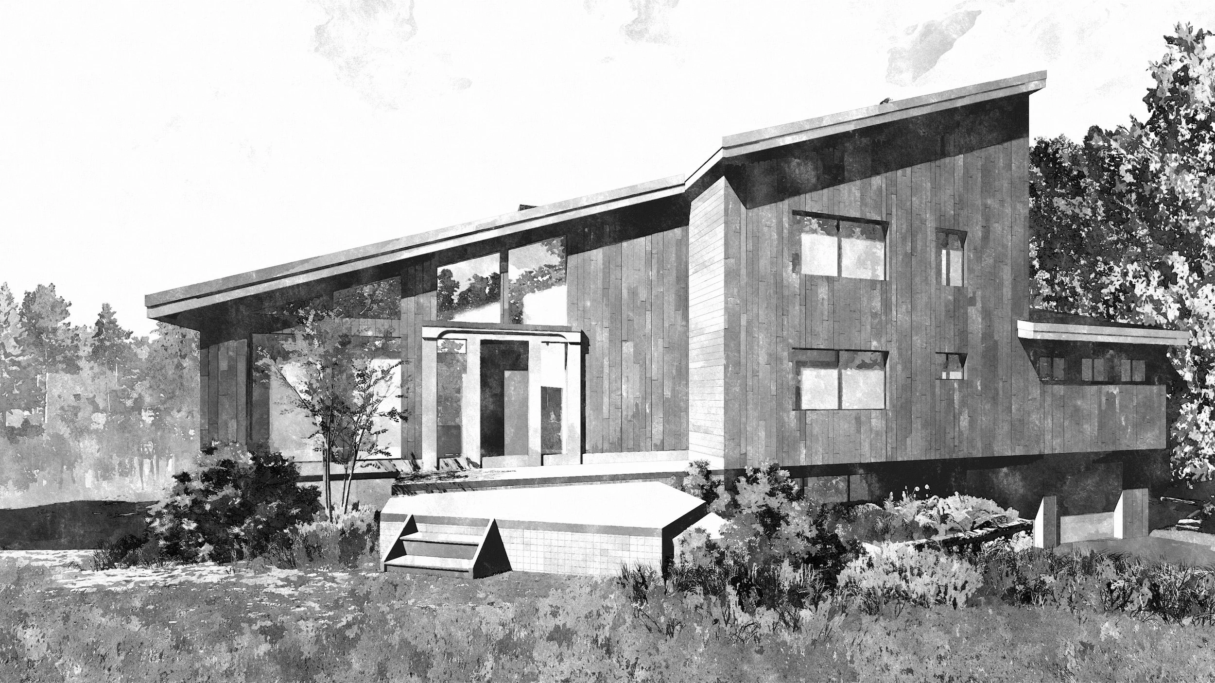 Ultimately, this design illustrates how minor exterior material enhancement and changing the pitch of a roof can enunciate the positive aspects of a mid-century modern while taking advantage of a missed opportunity from forty years ago.